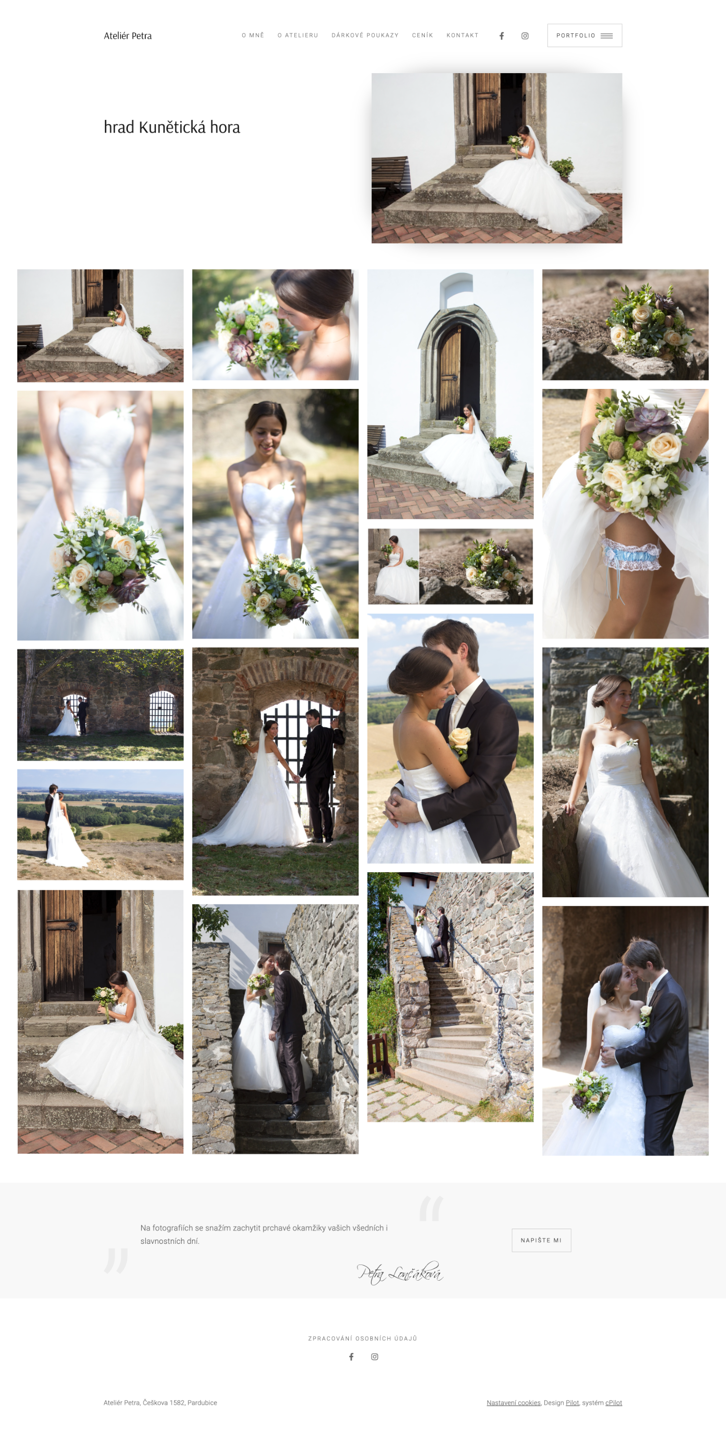 Podstatou prezentace jsou velké fotografie s responzí na maximální plochu prohlížeče. Administrace je snadná bez nutnosti zvláštní úpravy fotek pro web.